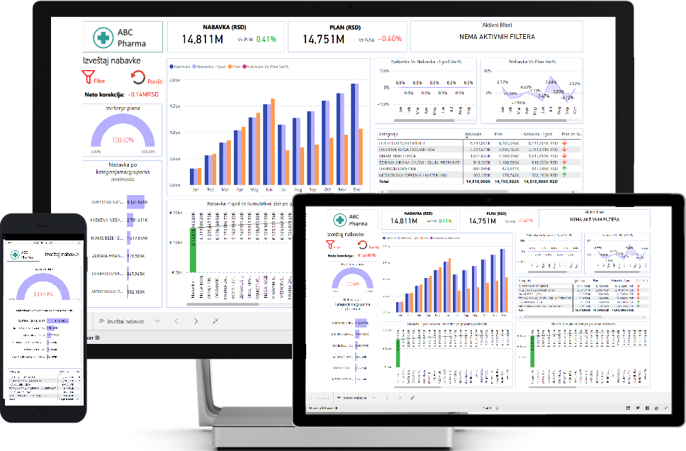 Stotine hiljada redova, desetine tabela – sumiranih u jednu aplikaciju ili izveštaj koji prikazuje kompletan pogled na Vaše poslovanje.
